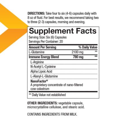 ¡4Life NanoFactor Glutamine Prime es un sustento para las células de tu sistema inmunitario! Nutre a tu sistema inmunitario con una fórmula exclusiva que incluye glutamina, el cual es un aminoácido que actúa como fuente principal de energía para las células del sistema inmunitario. Glutamine Prime también contiene NanoFactor, un concentrado exclusivo del calostro bovino microfiltrado para una comunicación celular más efectiva.. Glutamine Prime es un complemento perfecto para la línea completa de productos 4Life Transfer Factor. Toma de cuatro a seis (4-6) cápsulas vegetales diarias para nutrir a las células de tu sistema inmunitario, y a la vez darle energía a tu sistema inmunitario!