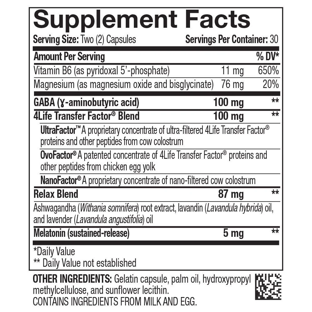 4Life Transfer Factor SleepRite es mucho más que un simple suplemento para conciliar el sueño. Con una fórmula cuidadosamente diseñada, calma tu mente y cuerpo para ayudarte a alcanzar un descanso satisfactorio, mientras que simultáneamente ofrece un respaldo esencial a tu sistema inmunitario. Estudiado clínicamente y reforzado con la exclusiva mezcla 4Life Transfer Factor, este producto promueve un sueño reparador, restaurador y de la más alta calidad.