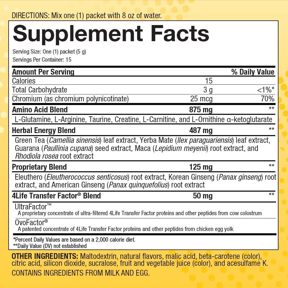 - Contiene 4Life Transfer Factor para respaldar al sistema inmunitario