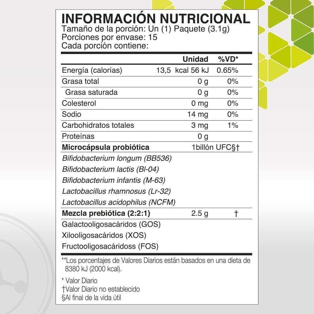 • Contiene tres tipos de prebióticos para optimizar el crecimiento de los probióticos saludables*